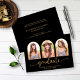 Elegant Boho Arch Black Gold 3 Photo Graduation Invitation
