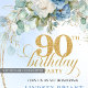 Elegant Boho Blue Floral 90th Birthday Invitation