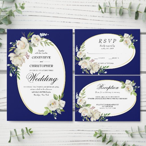 ELEGANT DARK BLUE & WHITE ROSES WEDDING SUITEDesigned by Christina Wedberg