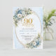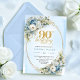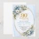 Elegant Boho Dusty Blue Floral Gold 90th Birthday Invitation