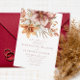 Plain white envelopes are included with paper invitations and will come to fit the invitation size you select. If you don’t need the envelopes, you may choose to not receive them by selecting the dropdown below "Envelopes" and choosing "None." If you’d like to have a design on your envelopes, you can browse all of these available envelopes to find the design that complements your Elegant Boho Fall Floral Wedding Invitation.