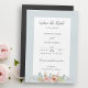 This romantic and elegant design features soft pastel roses and wildflowers in shades of blush pink, white, pale violet and gold on a light mint green background with white center element. This lovely design also includes flowing text graphics in a custom calligraphy font. The background color is also customizable.