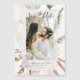 This elegant design features stunning spice brown, moss green, and cream bohemian floral bouquets. To enhance the details of your day, the script includes whimsical calligraphy and your lovely photo against a transparent deckled edge frame. Easily customize with your personal details to make it your own.