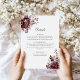 Share important wedding day information with style using this coordinating boho floral details card. Designed to match your invitation suite, this card features rich burgundy and blush florals with space for accommodations, transportation, dress code, or website info. Its minimalist layout ensures clarity while the floral accents keep it charming and cohesive. Fully editable text makes it easy to personalize for your special day. An essential part of any well-organized wedding suite.