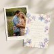 Plain white envelopes are included with paper invitations and will come to fit the invitation size you select. If you don’t need the envelopes, you may choose to not receive them by selecting the dropdown below "Envelopes" and choosing "None." If you’d like to have a design on your envelopes, you can browse all of these available envelopes to find the design that complements your Elegant Boho Iris Wedding Photo Invitation.