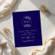 Announce your special day with this Elegant Boho Leaf Monogram Blue and White Wedding Save The Date Card. Featuring a chic couple's monogram at the top surrounded by delicate boho leaf accents, this design combines modern minimalism with timeless elegance. The dark blue background and crisp white text create a sophisticated look, perfect for setting the tone for your wedding. Easily customizable to showcase your personal wedding details.
