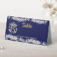 Elegant Boho Navy Silver Quinceañera Spanish Table Tent