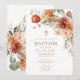 Elegant Boho Orange Floral Baptism Christening Invitation
