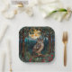 Immerse yourself in the enchanting allure of this elegant bohemian owl stain glass artwork, where nature's elegance meets timeless artistry. Set against a lush forest backdrop, this exquisite piece captures the serene beauty of a pristine woodland landscape, rich with intricate details of the trees against midnight blue moon lite sky,