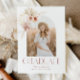 Elevate your graduation celebration with our trendy graduation announcement featuring a stunning arched frame on the front, perfect for showcasing your favorite photo and adding a personal touch to the occasion. Adorned with watercolor boho florals in the captivating shades of peaches, dusty rose, and terra cotta, these invitations exude a charming elegance with their stylish typography. Get ready to share your joy and achievement in a way that's both stylish and memorable!