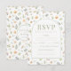 Elegant and timeless wedding RSVP cards feature a delicate boho arch and floral pattern at the back with whimsical vanilla flowers and waterclor greenery leaves. Designed for a classical wedding, they include a refined bride and groom monogram on the back, adding a personalized touch. Perfect for sophisticated, romantic celebrations.
