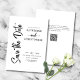 This unique Elegant Bold Script Black & White Formal Wedding Save the Date card features beautiful vertical script calligraphy and modern typography, and is fully customizable with your names, wedding details and a QR code for your wedding website. The classic black and white theme is perfect for weddings in any season.