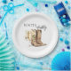 Celebrate the bride-to-be with this charming Boots & Bubbly bridal shower paper plate, where rustic meets elegance. Featuring a pair of watercolor cowboy boots and a champagne glass blooming with cream florals, this simple yet sophisticated design sets the tone for a stylish celebration. Perfect for country-chic or western-themed showers with a bubbly twist!