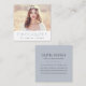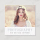 Show off a favorite shot on these modern square business cards for photographers or photography professionals. Design features two lines of custom text beneath your photo in off-black and slate blue gray lettering. Add your full contact information on the reverse side.