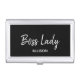 Show your boss how much she means to everyone with this Elegant Boss Black White Script Personalized Business Card Case. It is a minimal classy design with customizable black background and