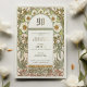Celebrate a 90th birthday with this elegant botanical party invitation. The design features intricate floral and foliage motifs in soft green, yellow, and gold tones, beautifully enhanced with luxurious gold foil accents. The detailed artwork, coupled with classic fonts, creates a sophisticated and timeless look, perfect for honoring such a significant milestone. Printed on high-quality paper, this invitation is fully customizable to include all the essential details for your special celebration. Ideal for a formal birthday party, this invitation will enchant your guests and set the tone for an unforgettable event.