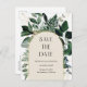 QR code Modern Greenery leaves wedding save the date Announcement Postcard