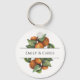 Pretty, elegant, modern and bohemian personalized and custom wedding button keychain for your special occasion! The design matches with the rest of the Orange Leaf Foliage Collection. Watercolor orange fruit with dark and light green leaves leaf foliage side border frames the top and bottom of your names.