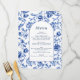 Elevate your wedding reception with this elegant botanical-themed menu, designed to complement a classic and timeless celebration. The sophisticated floral border in deep blue frames the central text, offering a graceful and refined presentation for your guests. With a cream-toned vintage-inspired background design brings a touch of old-world charm to your modern celebration. Perfect for adding an extra layer of beauty to your table setting, this menu guides your guests through the delicious courses planned for your big day. Ideal for couples seeking an elegant, traditional aesthetic for their wedding.