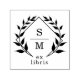 Elegant Botanical Ex Libris Monogram Library Book self-inking stamp featuring a diamond frame with your initials, surrounded by a laurel wreath. There is an ´´ex libris´´ text in classic typography. Customize through the ´´Personalize´´ button.