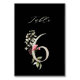Elegant Botanical Floral Number 6, Black Table Number