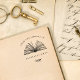 Beautiful and classy stamp with your custom name to personalize your library books. The stamp features "from the library of" in curved elegant text on the top, a gorgeous image of an open book at the center, and a delicate sprig on the bottom. Below the book is a name you can easily replace with yours. Great gift for the book lover or librarian!