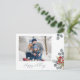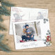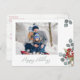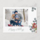 Elegant Botanical Greenery Blue Script Multi Photo Holiday Postcard