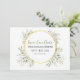 These cards feature a classic white background with a luxurious gold wreath adorned with delicate watercolor green foliage and a beautiful wedding template that can be easily customized. They will surely add a touch of romance and sophistication to your special day.