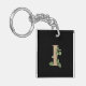 Elegant black keychain with a gold botanical monogram featuring capital I letter in the center.