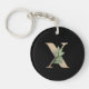 Elegant black keychain with a gold botanical monogram featuring capital X letter in the center.