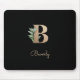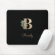 Elegant black mouse pad features a gold botanical monogram in the center.