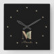 Elegant Botanical Monogram Letter M Square Wall Clock