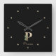 Elegant Botanical Monogram Letter P Square Wall Clock