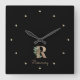 Elegant Botanical Monogram Letter R Square Wall Clock
