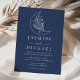 Elegant Botanical Moon and Stars Navy Wedding Invitation