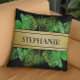 Add beauty, personality, and luxury to your everyday lounging with this botanical green throw pillow, featuring lush tropical leaves and a faux gold name band. Perfect for personalized home décor, housewarming gifts, or adding a chic accent to any room. Designed to complement modern, tropical, or nature-inspired aesthetics. Customize with your name or a loved one’s for a unique touch.