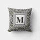 Elegant Botanical Pattern Black and White Monogram Outdoor Pillow