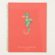 Elegant watercolor botanical seahorse logo, in living coral with gold geometric accent on back, personalized planner. Personalize text, customize font style, color and size. Background color can be customized as well.