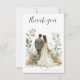 Celebrate your wedding in style with this elegant Thank You Card, featuring a romantic illustration of a bride and groom surrounded by soft botanical greenery and warm floral tones.