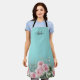 Elegant Botanical Turquoise Script Name Monogram Apron