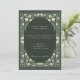 Dark green wedding invitation with elegant white floral details creates a timeless and romantic look for your special day. The symmetrical botanical frame inspired by nature adds a refined and artistic touch. Perfect for garden weddings, forest-themed ceremonies, or fall and winter celebrations. The oval center provides a clean space for customizing names, dates, and venue details. Ideal for couples seeking a sophisticated yet natural invitation style. Designed for both print and digital use, ensuring a polished and high-quality presentation.