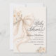 Celebrate the upcoming arrival of your little one with this timeless and luxurious baby shower invitation. Featuring a soft ivory palette, an oversized pearl-adorned bow, delicate florals this design exudes classic elegance and refined charm. The graceful typography and neutral tones make this invitation perfect for a baby girl baby shower. Ideal for formal celebrations, elegant venues, and parents who love a timeless, polished style. Matching items are available.
