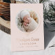 Introducing our Elegant Blush and Rose Gold Foil Bow Photo Birth Announcement, a stunning way to celebrate your little one’s arrival. The baby’s photo is beautifully encircled by a rose gold foil ribbon tied in a bow on a light blush pink background. Your baby's first and middle name appear in elegant calligraphy, with the last name and birth stats below. The back of the announcement offers space for an extra photo and a personal message. This luxurious, customizable keepsake is perfect for sharing your joy with family and friends!