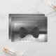 Sleek and sophisticated, one might toss around the word debonair, this charcoal gray, lighter gray gradient and black tuxedo bow tie, is designed specifically to request your best friend to be the Best Man at your most important day. Personalize on front with name and you can use our tongue in cheek message on back, or write your own.