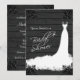 Elegant Bridal Gown on Rustic Black Wood Invitation