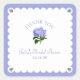 These square thank-you stickers feature a hand-painted blue hydrangea with soft scalloped edges and a lavender-blue border, bringing just the right amount of sweetness to your bridal shower favors. “Thank You” arches above the bloom in a refined serif font, while the customizable text lets you personalize with the bride’s name and date. Use them to seal favor bags, gift boxes, or takeaway treats for a polished finishing touch that still feels relaxed and pretty.