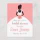 Bridal shower invitation with silhouette of an elegant bride against pastel pink background.