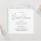 Celebrate the bride-to-be in effortless style with this elegant bridal shower invitation. Featuring chic typography and clean, contemporary stripes, this design brings a fresh, minimalist touch to your special celebration. Easily personalize the template with your event details, including the bride’s name, date, time, venue, and RSVP information. A custom design with fully editable text for you to create a tailored invite. Versatile and timeless, this invitation complements a variety of bridal showers, from brunch and bubbly to an intimate gathering at home — perfect for spring and summer celebrations. Printing colors: pastel blue-green, teal, white and dark gray text. Square format 5.25" x 5.25". Available as a printed invitation or an instant digital download. Explore the online collection for matching designs!
