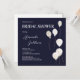 Elegant Bridal Shower Navy White Invitation to Honor the Bride. This Elegant Bridal Shower Invitation is designed on a navy background with white text, and decorated with white and gold trimmed balloons. The front text includes: The Bride's First and Last Name, Shower Date, Time, and RSVP - Host Details. The reverse side is a white background with text: Bridal Shower in matching Navy with balloon accent. To personalize, simply insert your details into our easy template, replacing the sample text.