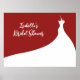 An elegant wedding dress accents this bridal shower poster on a classic red background. This is part of the Elegant Bridal Shower Collection in red. If additional coordinating items are needed just contact us at prettyfancyinvites@gmail.com with your request.